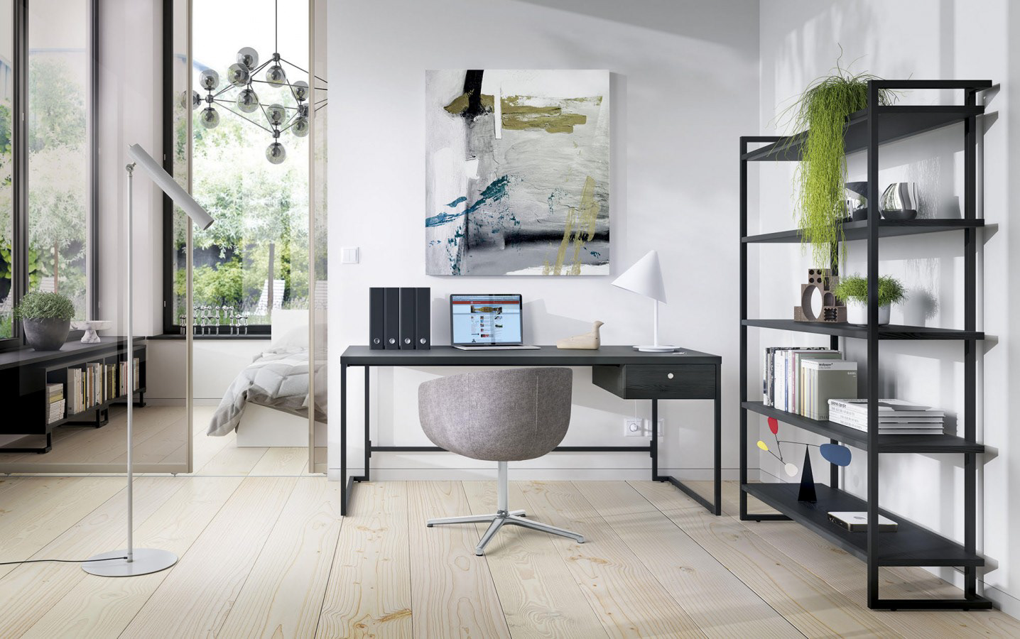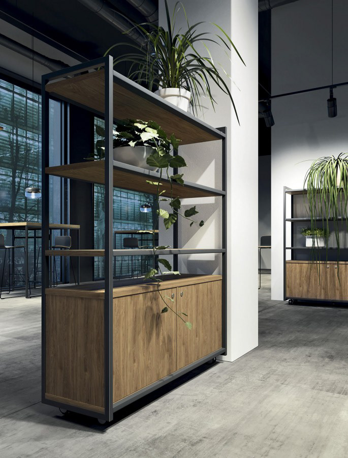 The second of the three office furniture systems, designed for Mebelux.It consists of: desks, benches, conference tables, bookstands, wardrobes, lockers, occasional tables, counters, multifunctional boars and high desks for standing work. Finalist of Dobry Wzór 2020 design competition.
